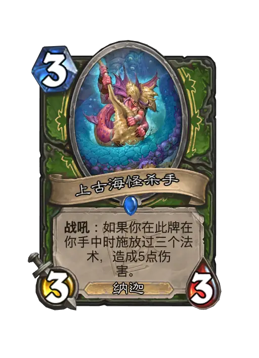 上古海怪杀手(Ancient Krakenbane)是潮汐王座加入的一张猎人 随从牌。