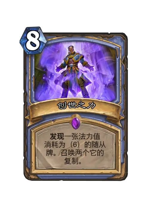 - 旧:发现一张法力值消耗为(6)的随从牌。召唤它的两个复制。