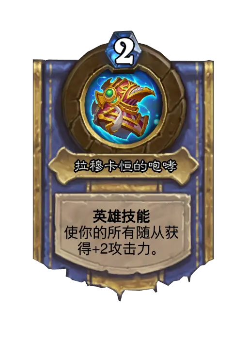 - 旧:英雄技能使你的所有随从获得+2攻击力。