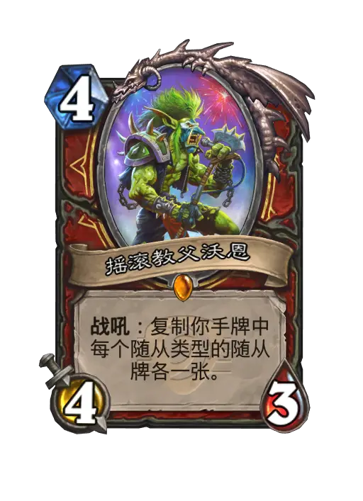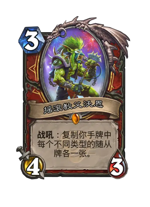 摇滚教父沃恩(Rock Master Voone)是传奇音乐节加入的一张战士 随从牌。