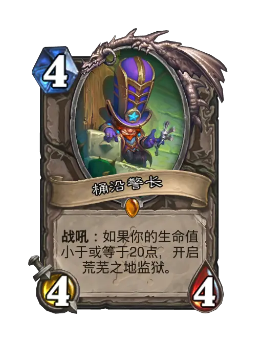 桶沿警长(Sheriff Barrelbrim)是决战荒芜之地加入的一张中立 随从牌。