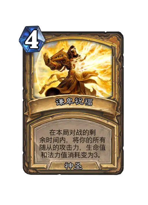 谦卑祝福(Humble Blessings)是对决模式加入的一张圣骑士 法术牌。