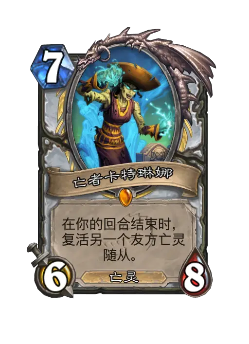 亡者卡特琳娜(Catrina Muerte)是核心加入的一张牧师 随从牌。
