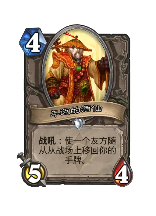 年迈的酒仙(Ancient Brewmaster)是怀旧加入的一张中立 随从牌。