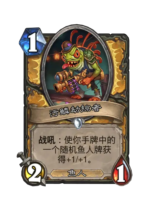 - 旧:战吼:使你手牌中的一个随机鱼人牌获得+1/+1。