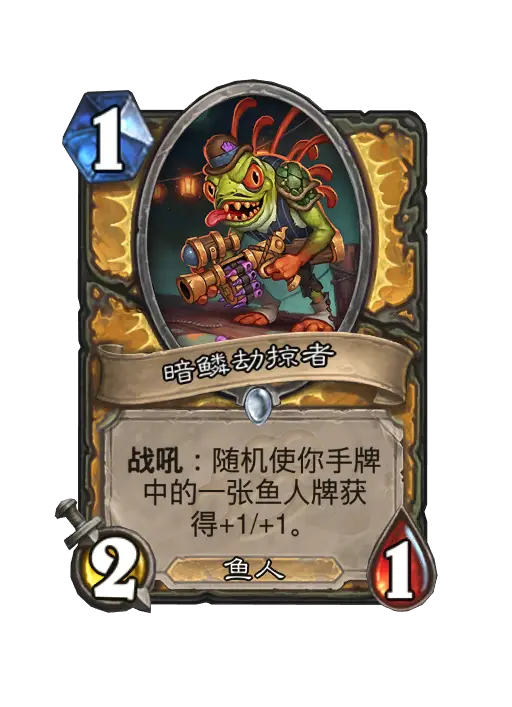 - 新:战吼:随机使你手牌中的一张鱼人牌获得+1/+1。