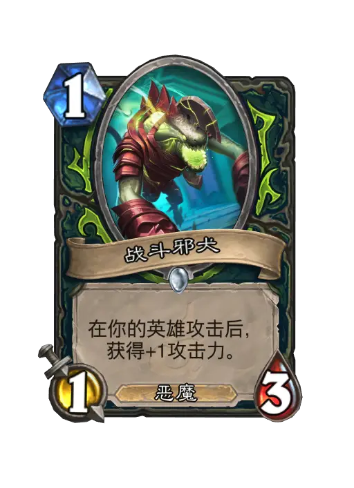 战斗邪犬(Battlefiend)是恶魔猎手新兵加入的一张恶魔猎手 随从牌。