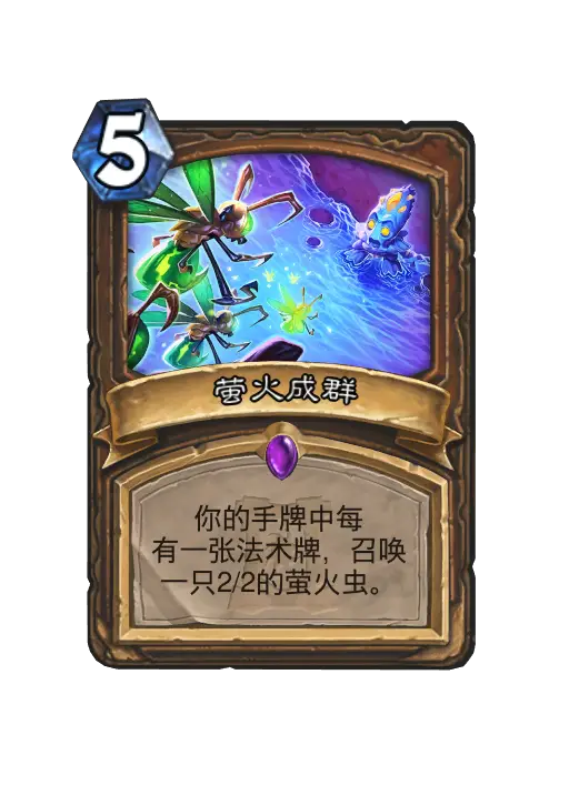 | 你的手牌中每有一张法术牌,召唤一只2/2的萤火虫。 Summon a 2/2 Glowfly for each spell in your hand. | |