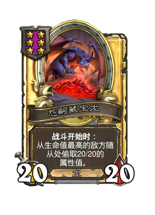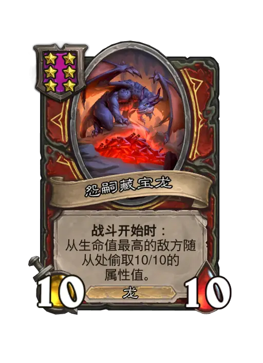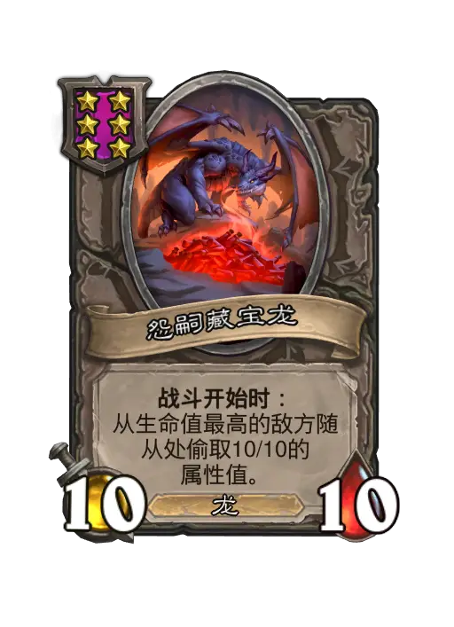 怨嗣藏宝龙(Hoarding Hatespawn)是酒馆战棋加入的一张战士 随从牌。