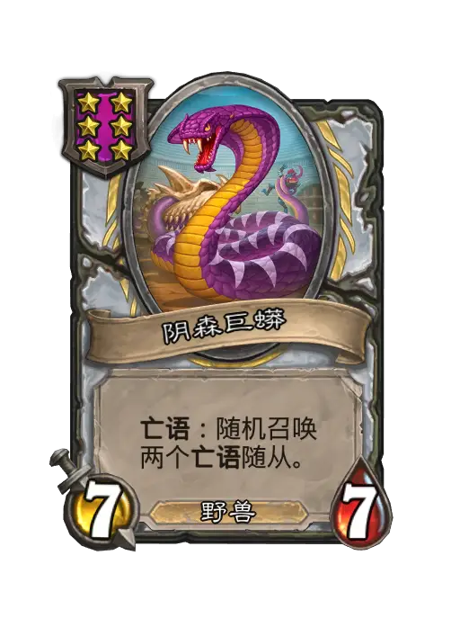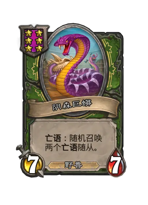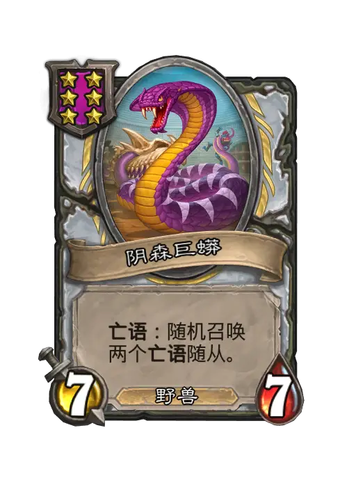 阴森巨蟒(Ghastcoiler)是酒馆战棋加入的一张猎人 随从牌。