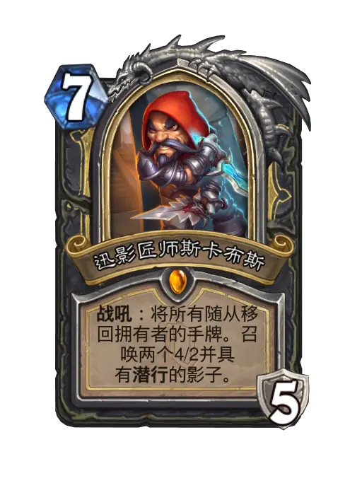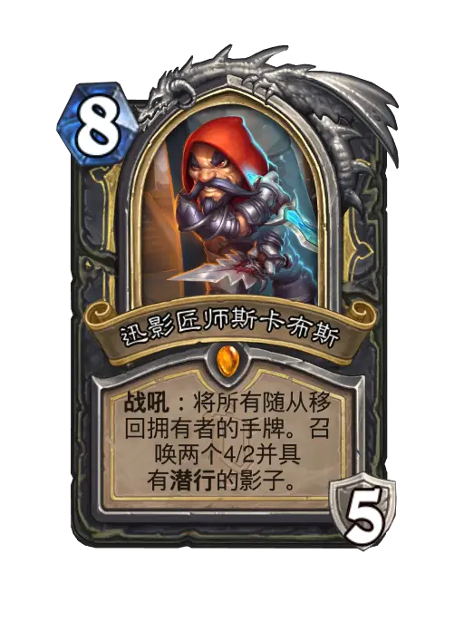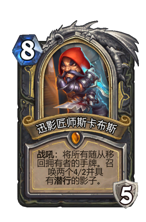 迅影匠师斯卡布斯(Shadowcrafter Scabbs)是奥特兰克的决裂加入的一张盗贼 可打出英雄牌。