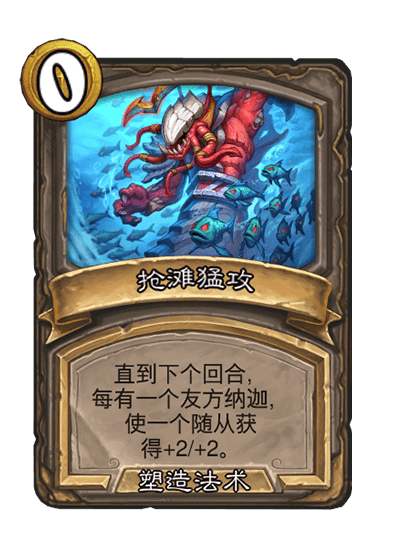 塑造法术:直到下个回合,每有一个友方纳迦,使一个随从获得+1/+1。 | |