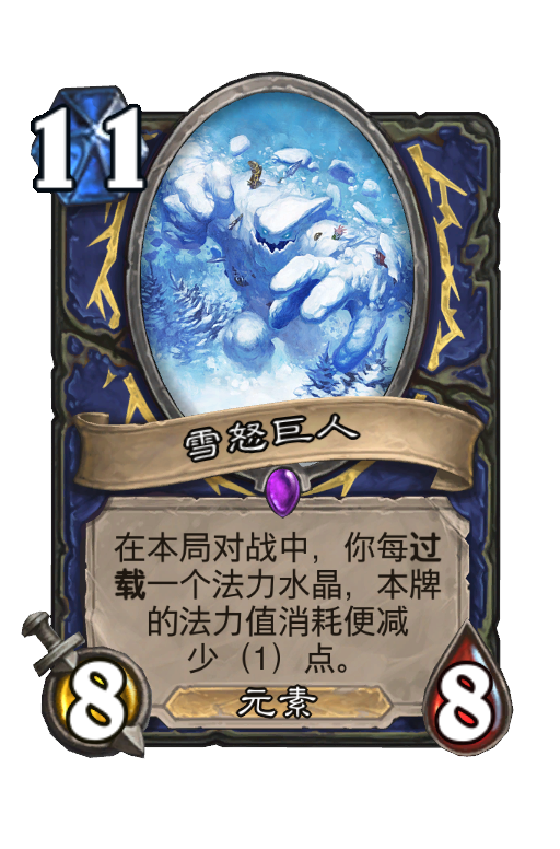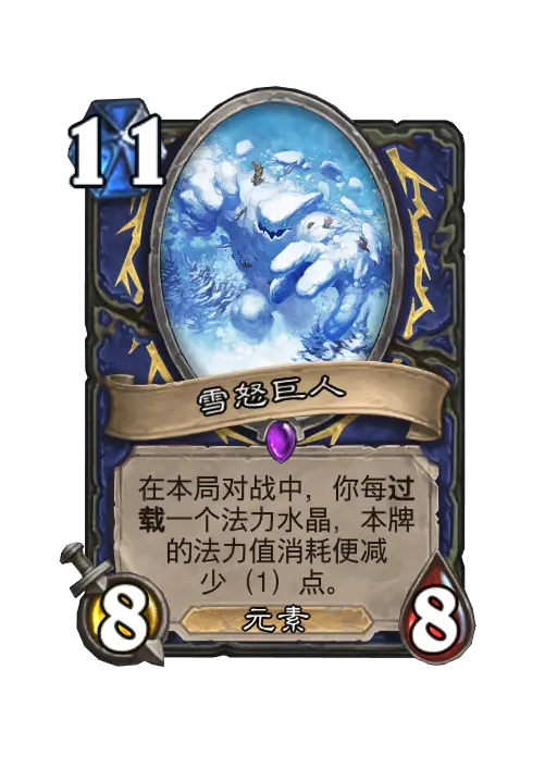 雪怒巨人(Snowfury Giant)是核心加入的一张萨满祭司 随从牌。